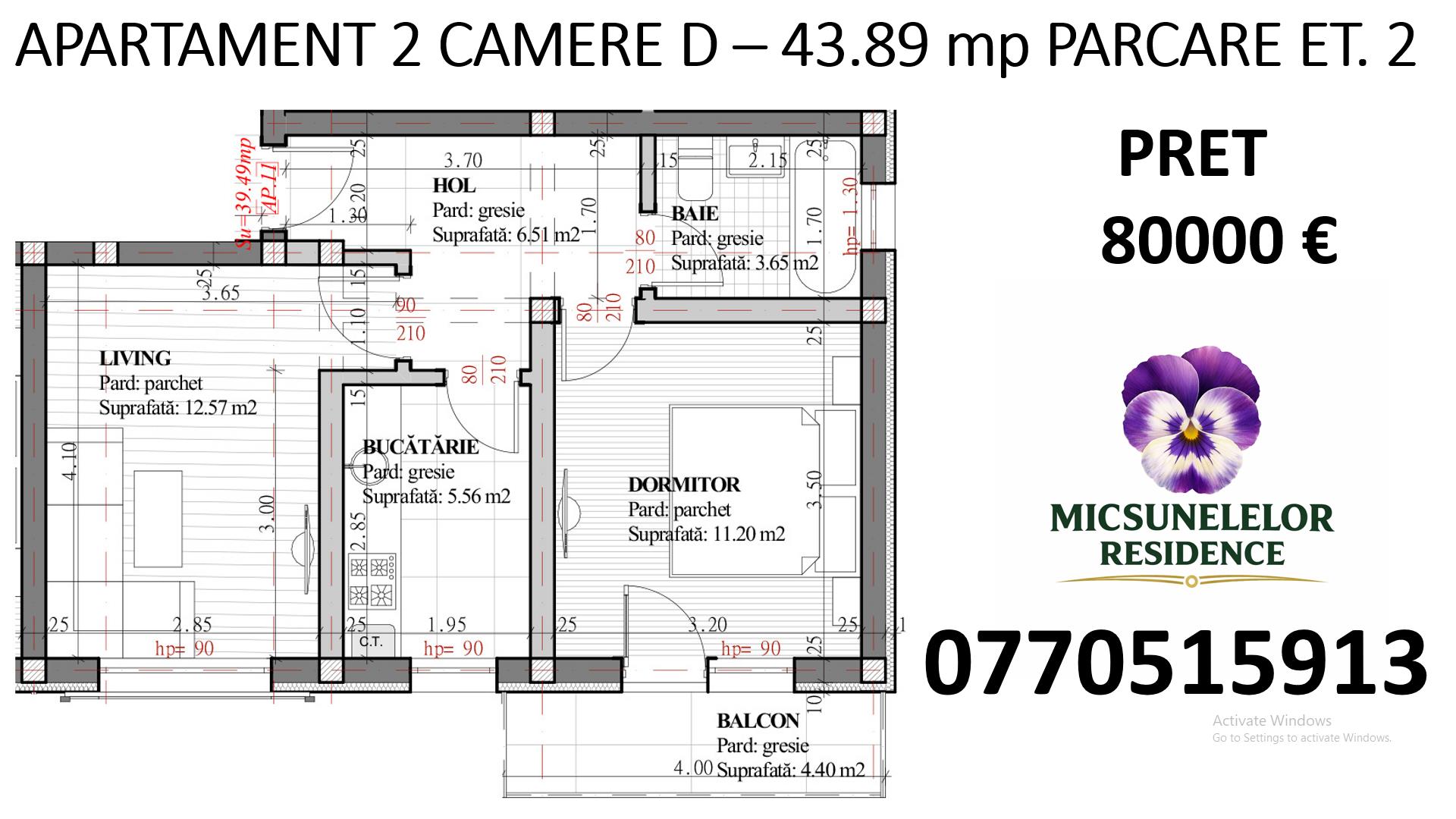 Apartament 2 camere, 44 mp