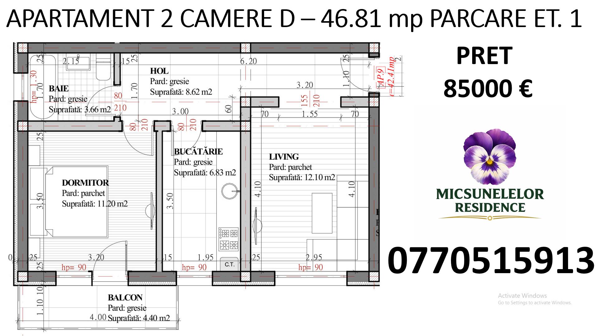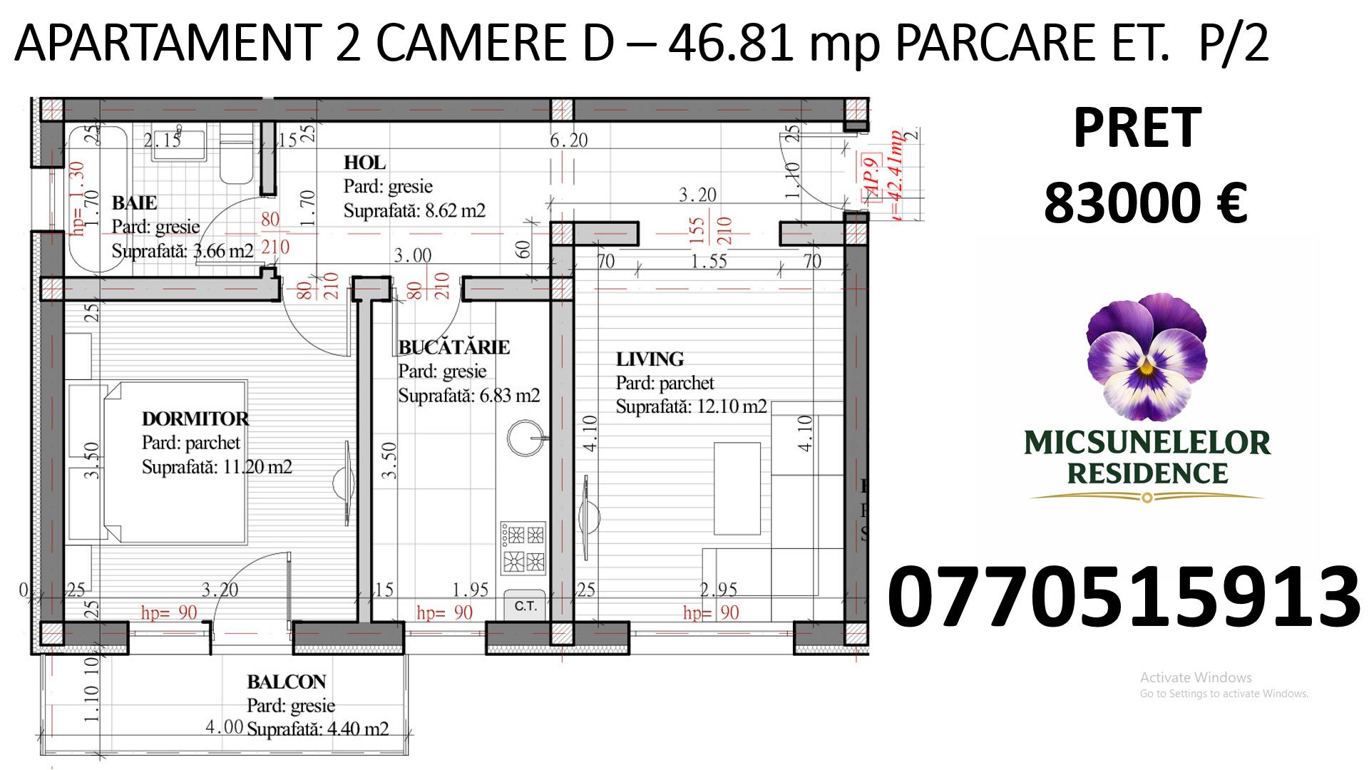 Apartament 2 camere, 46.8 mp