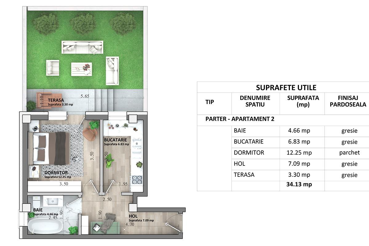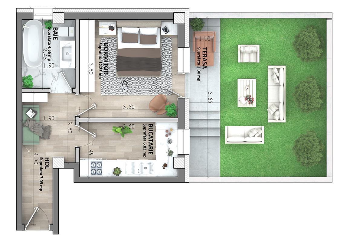Apartament 1 camere D – 34 MP + CURTE 25 MP